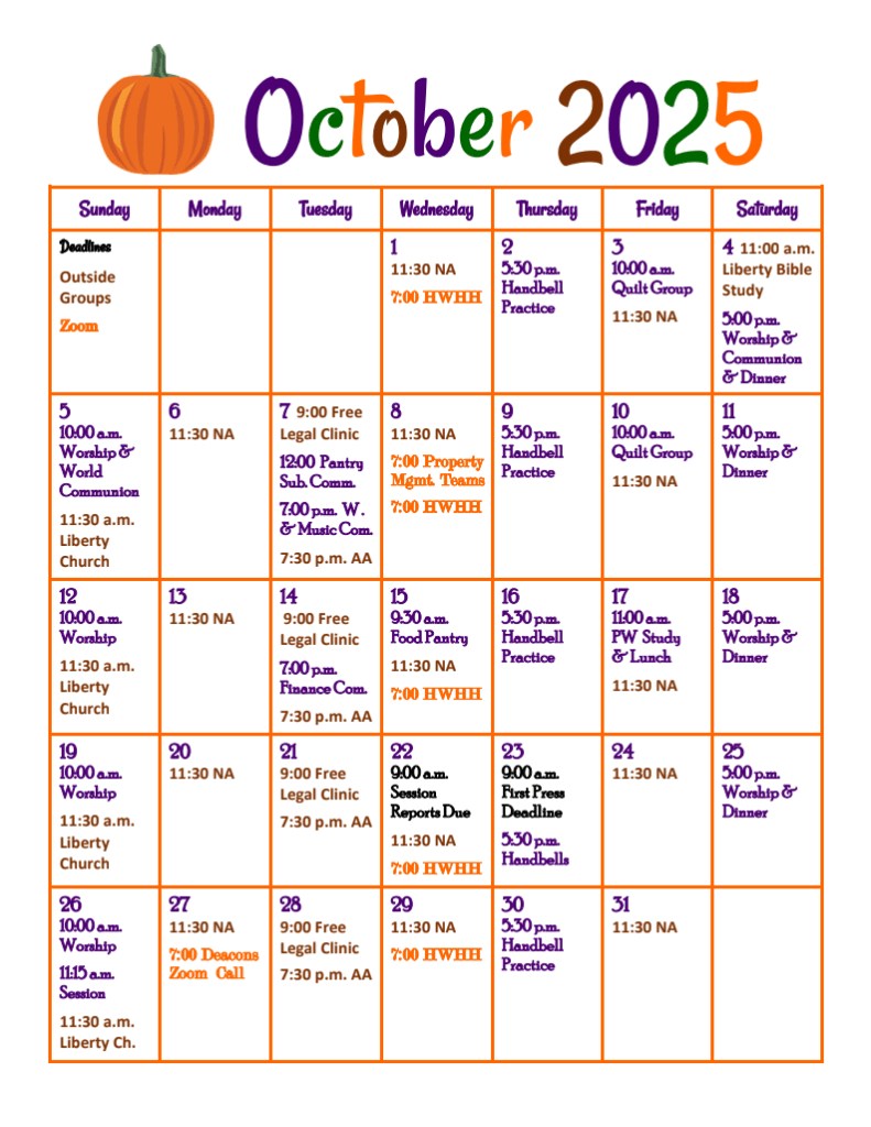 Heritage Ringers at First Presbyterian Church will be ringing handbells on Sunday October 26th. Judy Phillips from Tuesday Musicale will direct two selections performed by 12 ringers. The service begins at 10:00am. Please join us and feel free to bring a friend.